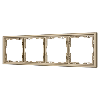 Рамка пластиковая на 4 поста, под встраиваемый механизм. Цвет - золотой, с Soft-Touch покрытием. Среднего уровня герметичности IP20. Ориентация монтажа горизонтальная.